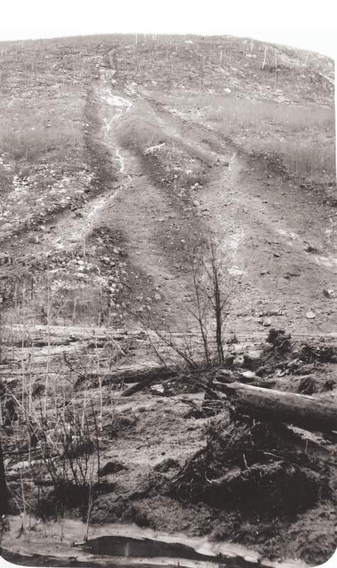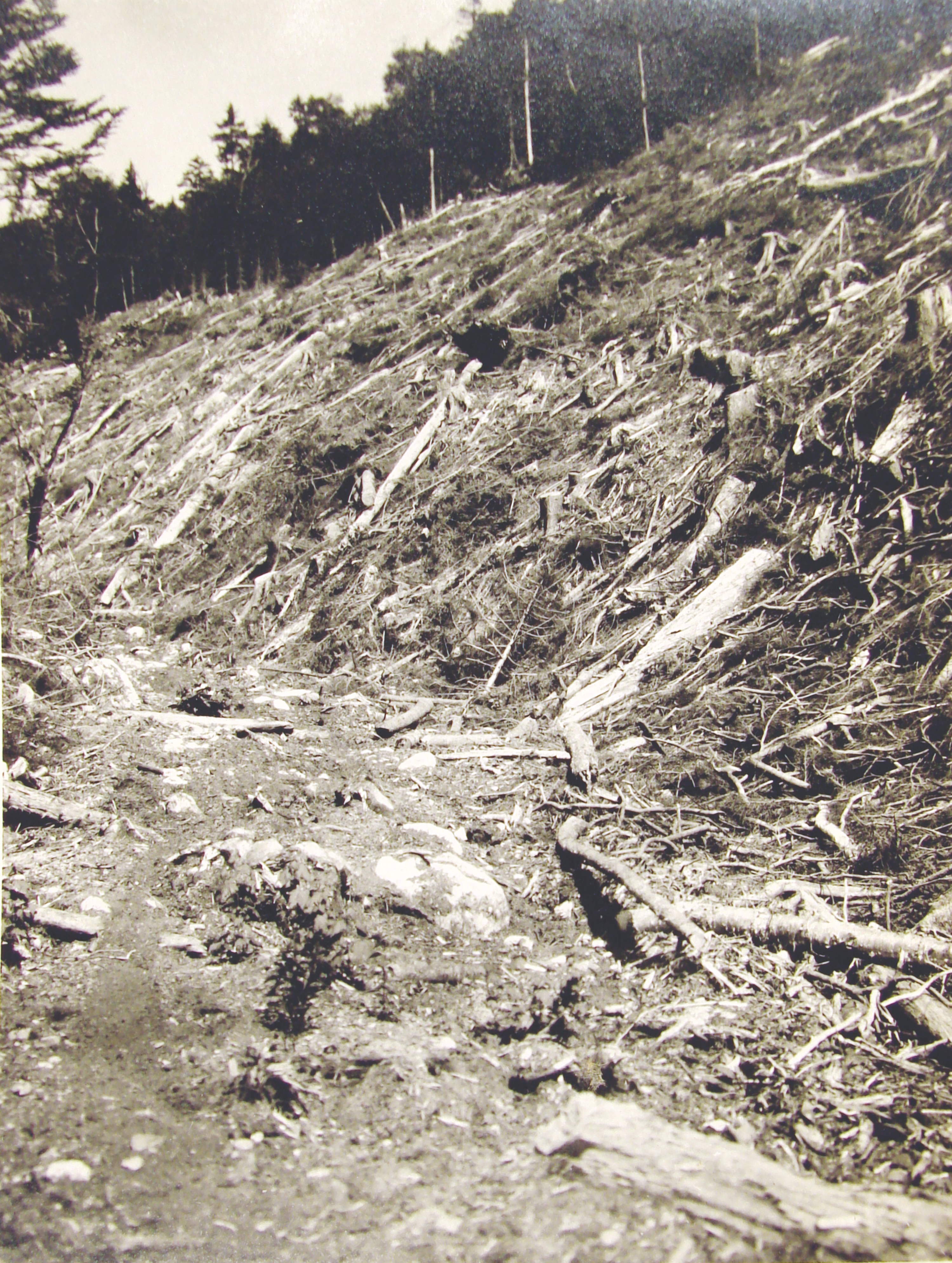 Leftover “slash,” Upper Sabba Day Falls (1915) — a serious fire hazard!: