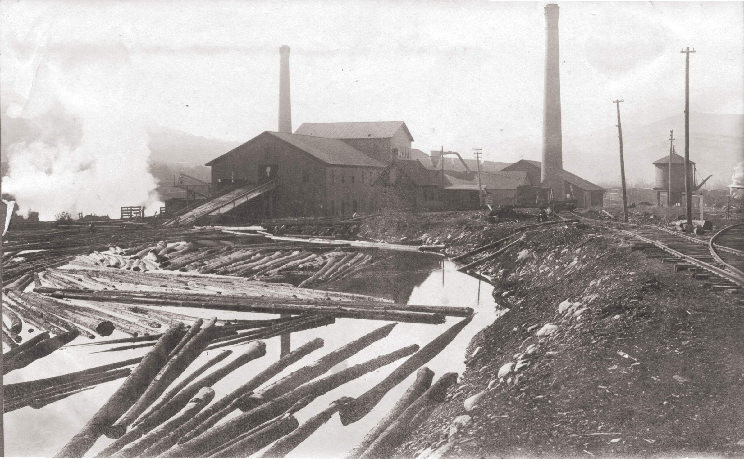 … floating logs down to the mills below: