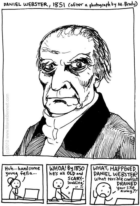 After drawing his statue at the State House, I started reading up on Daniel Webster and became captivated by these two images:  Â