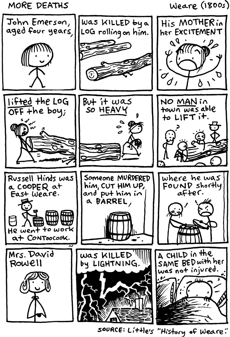 More tragic ends for some of Weare’s early citizens: << BEFORE: Deaths … NEXT: Fatalities a couple towns over, in Antrim >> Share this: Click to share on Facebook (Opens in new window) Facebook Click to share on X (Opens in new window) X Click to share on Reddit (Opens in new window) Reddit Click to share on Pinterest (Opens in new window) Pinterest Click to email a link to a friend (Opens in new window) Email Click to print (Opens in new window) Print Like Loading... Related Published by Marek Cartoonist, musician, teacher. View all posts by Marek