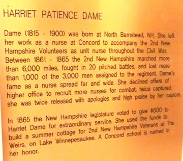 Harriet Patience Dame served as a regimental nurse with the 2nd NH throughout the Civil War, and was even captured twice! She was born at North Barnstead.