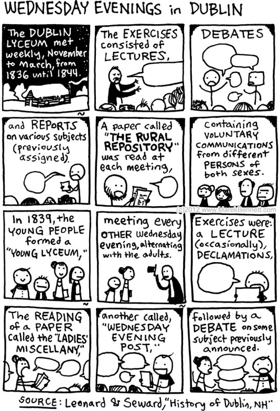 Don’t you wish you could sit in on one of these weekly meetings? This is what people in small towns did ALL AROUND New England in an age before electronic devices or even cheap publishing.