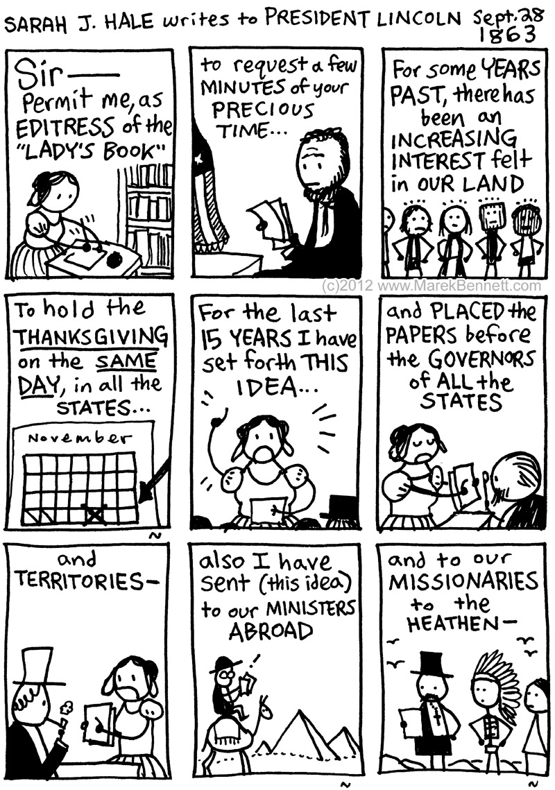 - Hale refers to her 15+ year campaign for the official designation of a National Day of Thanksgiving; you can read all Hale’s editorials from “Godey’s Lady’s Book” (1847 through the Civil War & beyond!) HERE!