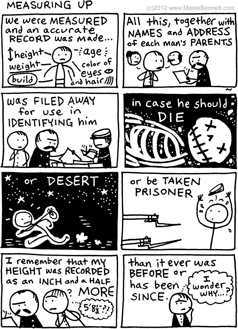 1862: You’re in the army now. Civil War Diary of Freeman Colby (continued): << BEFORE: Inspection of the teeth… NEXT: Company K >> 22 July 1862 Share this: Click to share on Facebook (Opens in new window) Facebook Click to share on X (Opens in new window) X Click to share on Reddit (Opens in new window) Reddit Click to share on Pinterest (Opens in new window) Pinterest Click to email a link to a friend (Opens in new window) Email Click to print (Opens in new window) Print Like Loading... Related Published by Marek Cartoonist, musician, teacher. View all posts by Marek
