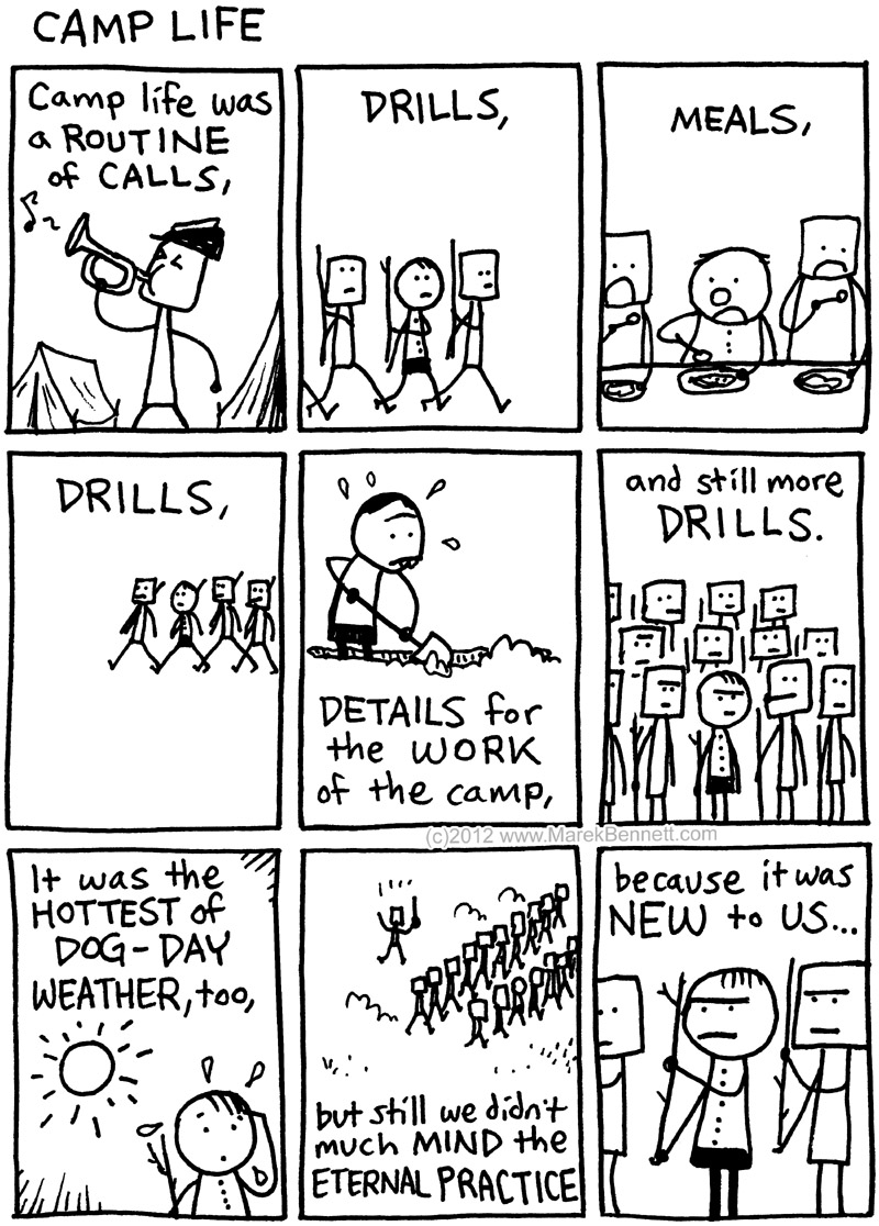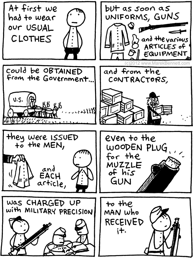 1862: ย Camp routine of the 39th Massachusetts Company K… ย Civil War Diary of Freeman Colbyย (continued): << BEFORE: Welcome to Company Kย … NEXT: Stuff for sale! >> Share this: Click to share on Facebook (Opens in new window) Facebook Click to share on X (Opens in new window) X Click to share on Reddit (Opens in new window) Reddit Click to share on Pinterest (Opens in new window) Pinterest Click to email a link to a friend (Opens in new window) Email Click to print (Opens in new window) Print Like Loading... Related Published by Marek Cartoonist, musician, teacher. View all posts by Marek