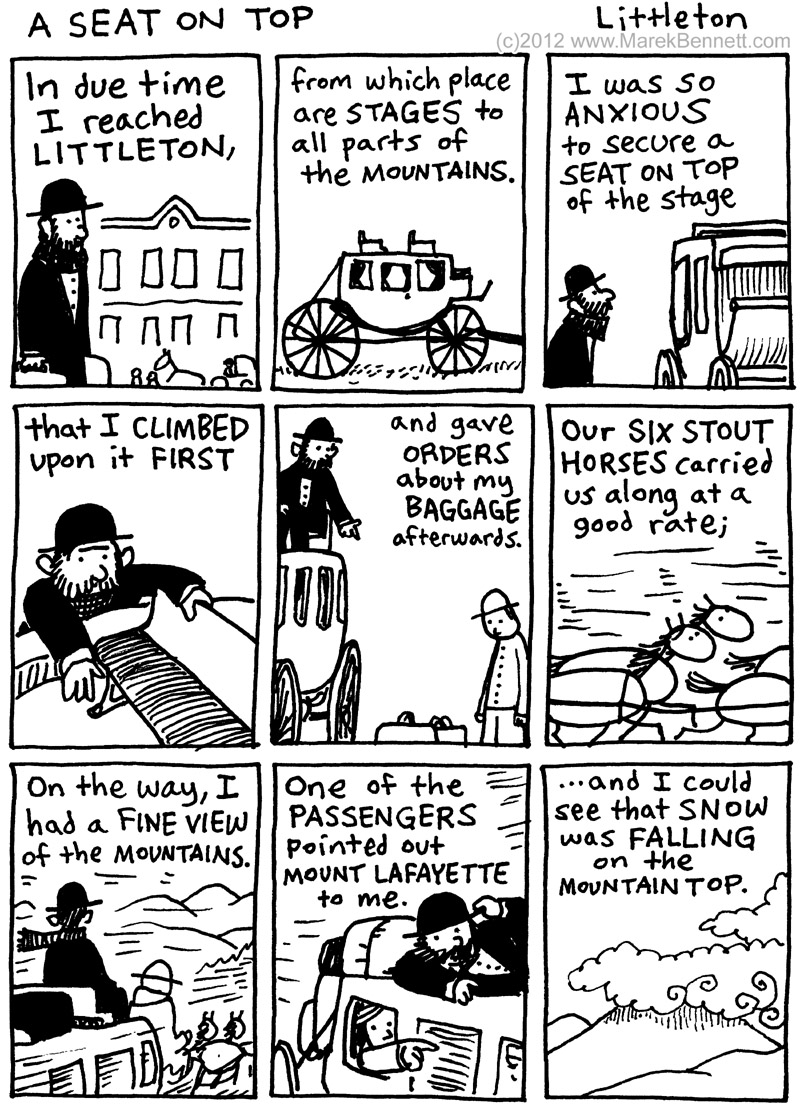 1865: A late-spring storm surprises Swett in his seat on the roof of the stage…