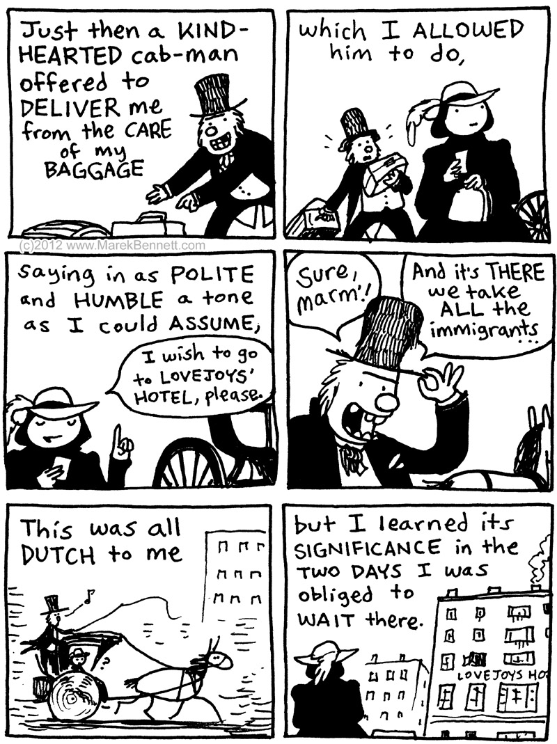 Hansom cabs were still novelties in New York of the early 1860s.