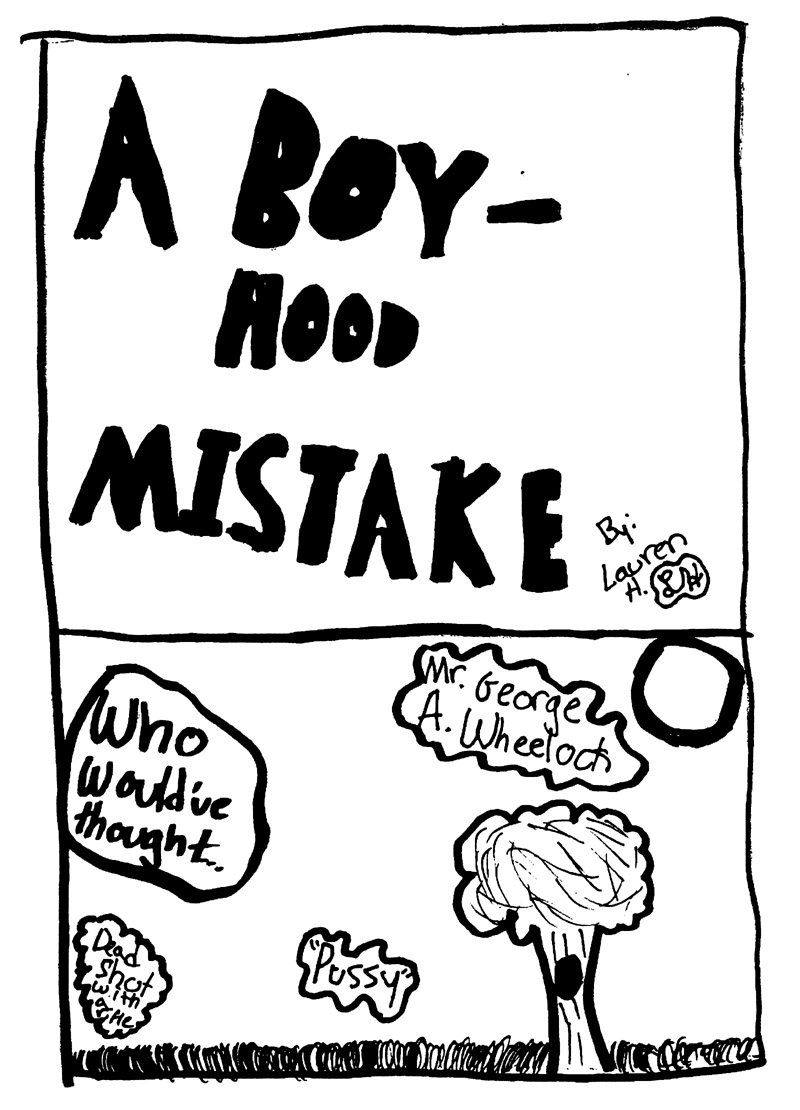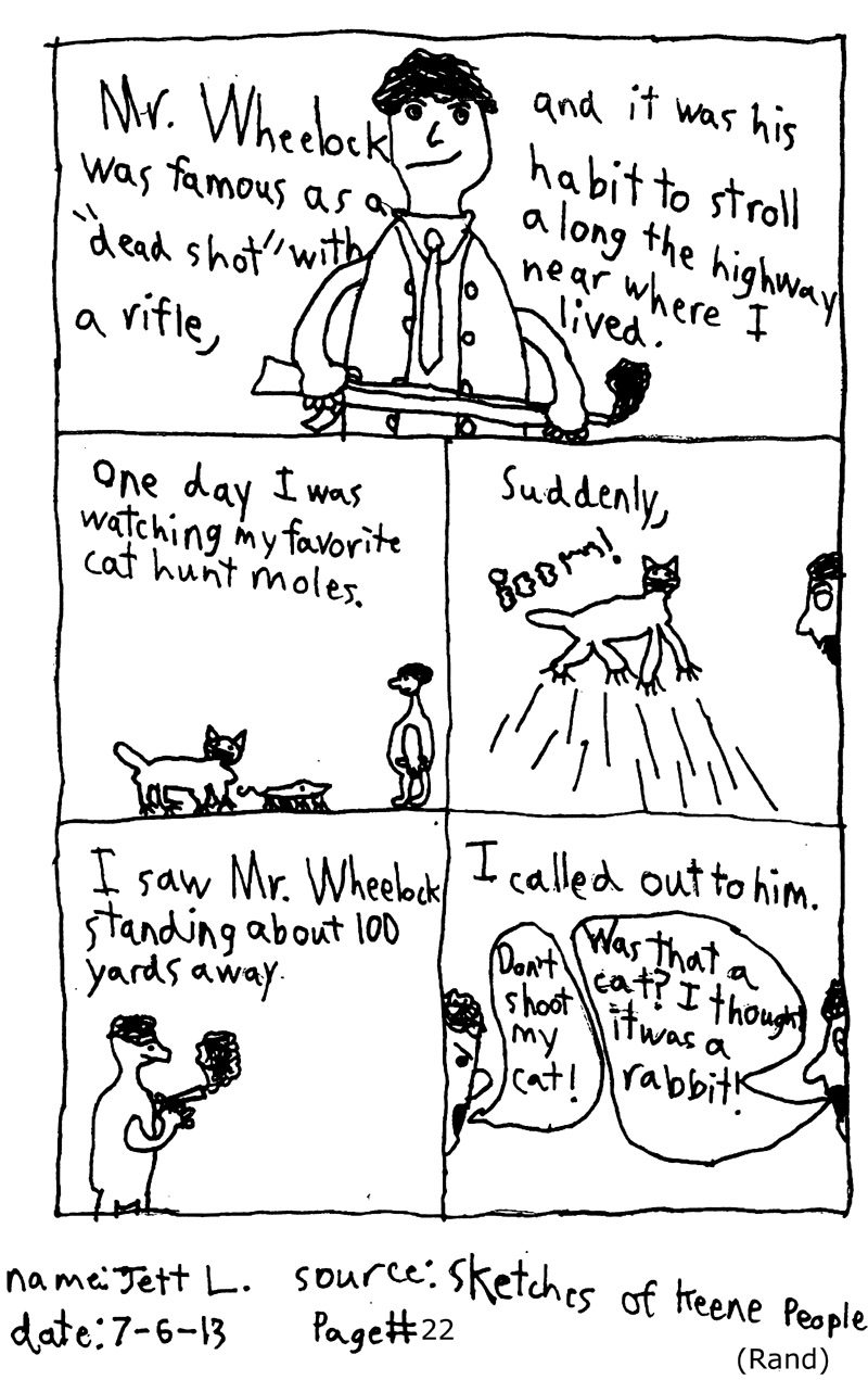 Jett’s comic (above) uses narration to advance the plot. Lauren’s 2-page version (below) lets the actions speak for themselves: