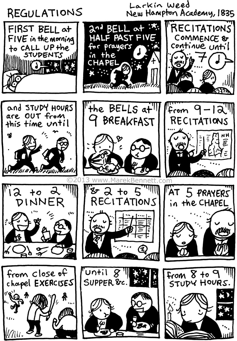 1835: Larkin Weed writes home to his sister Phebe at Sandwich, detailing his daily schedule at New Hampton Academy: