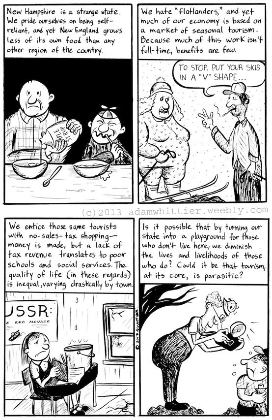 Guest artist Adam Whittier (Sunapee) asks some tough questions about his old NH home… :