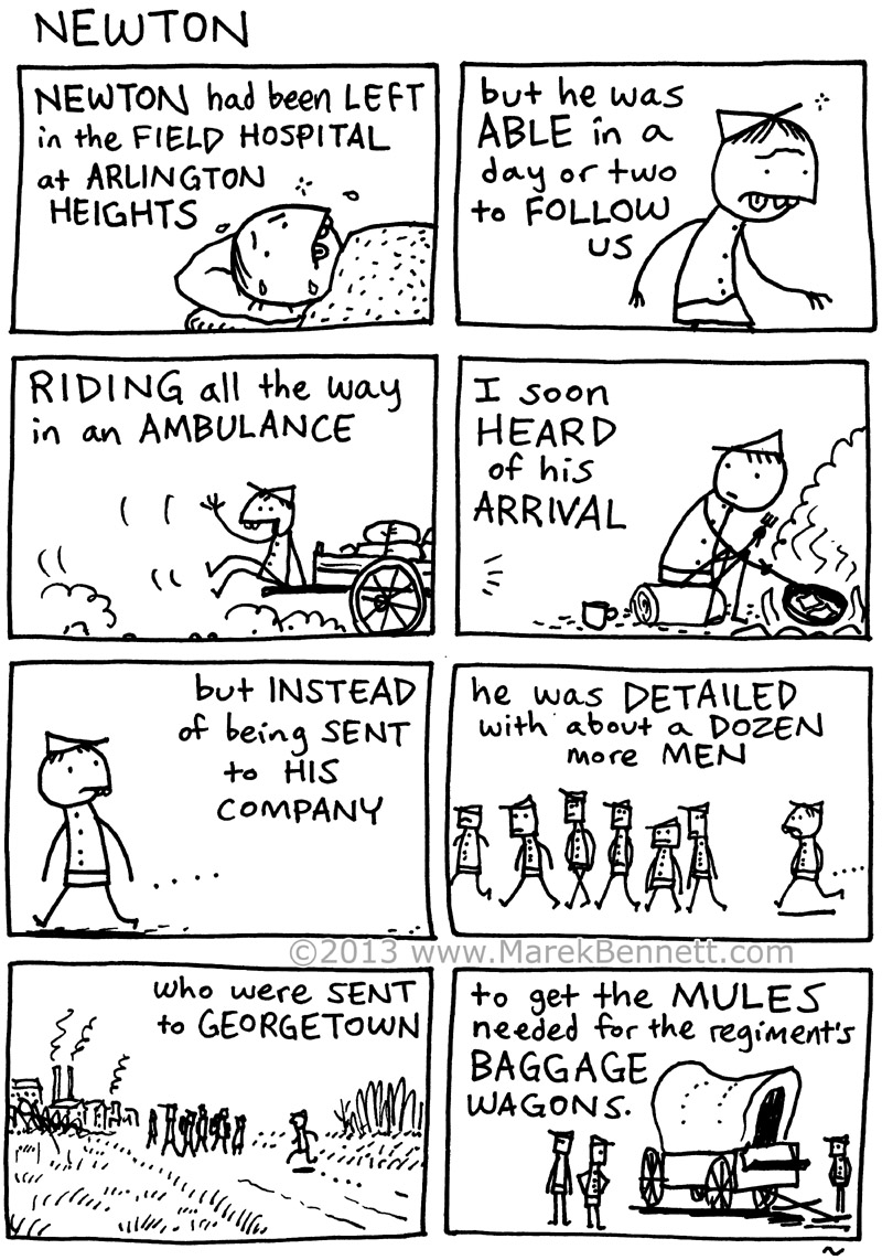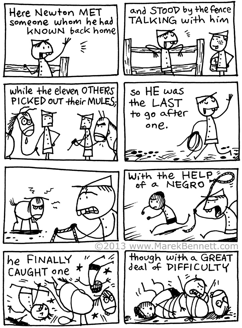 Newton’s troubles aren’t over yet… He still needs to guide the US Army’s most uncooperative mule through that 2 day hike back to camp!