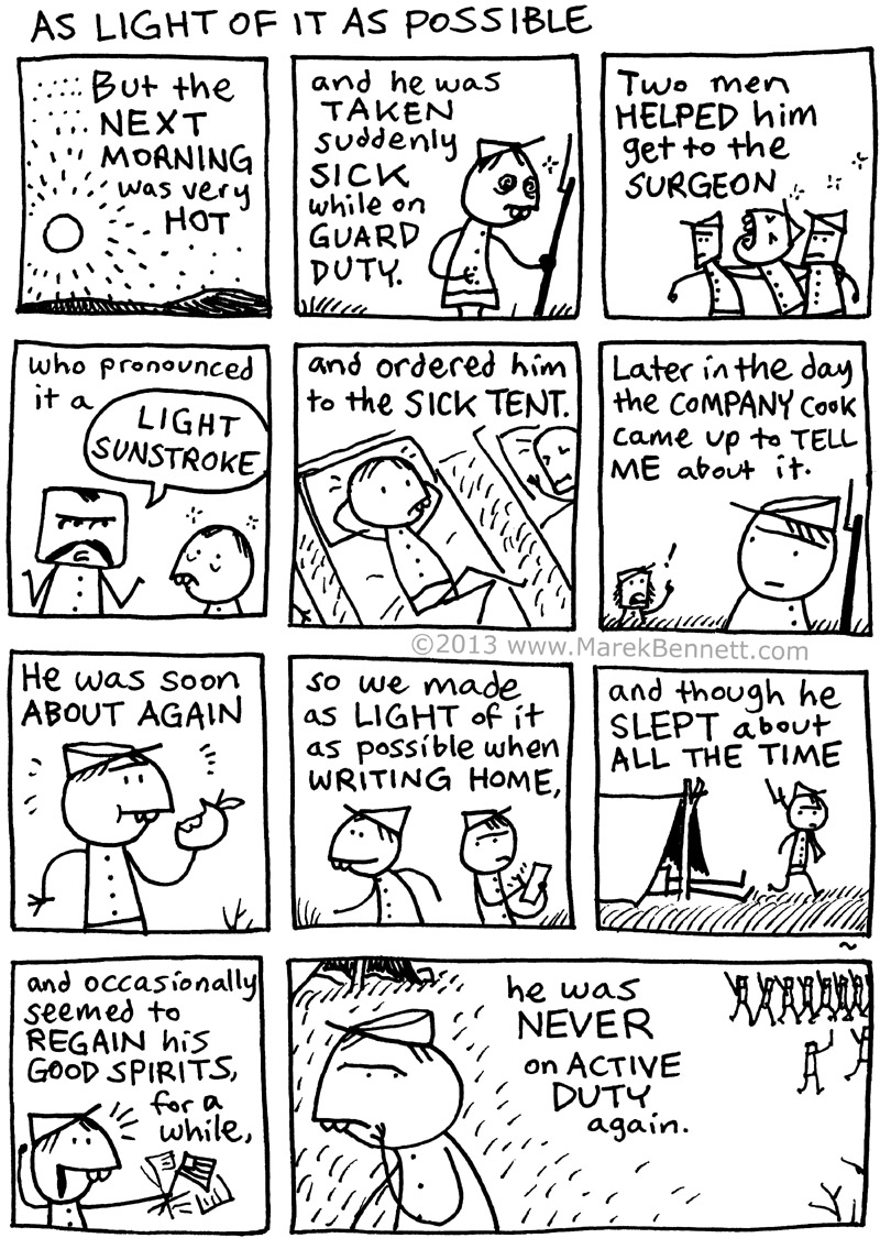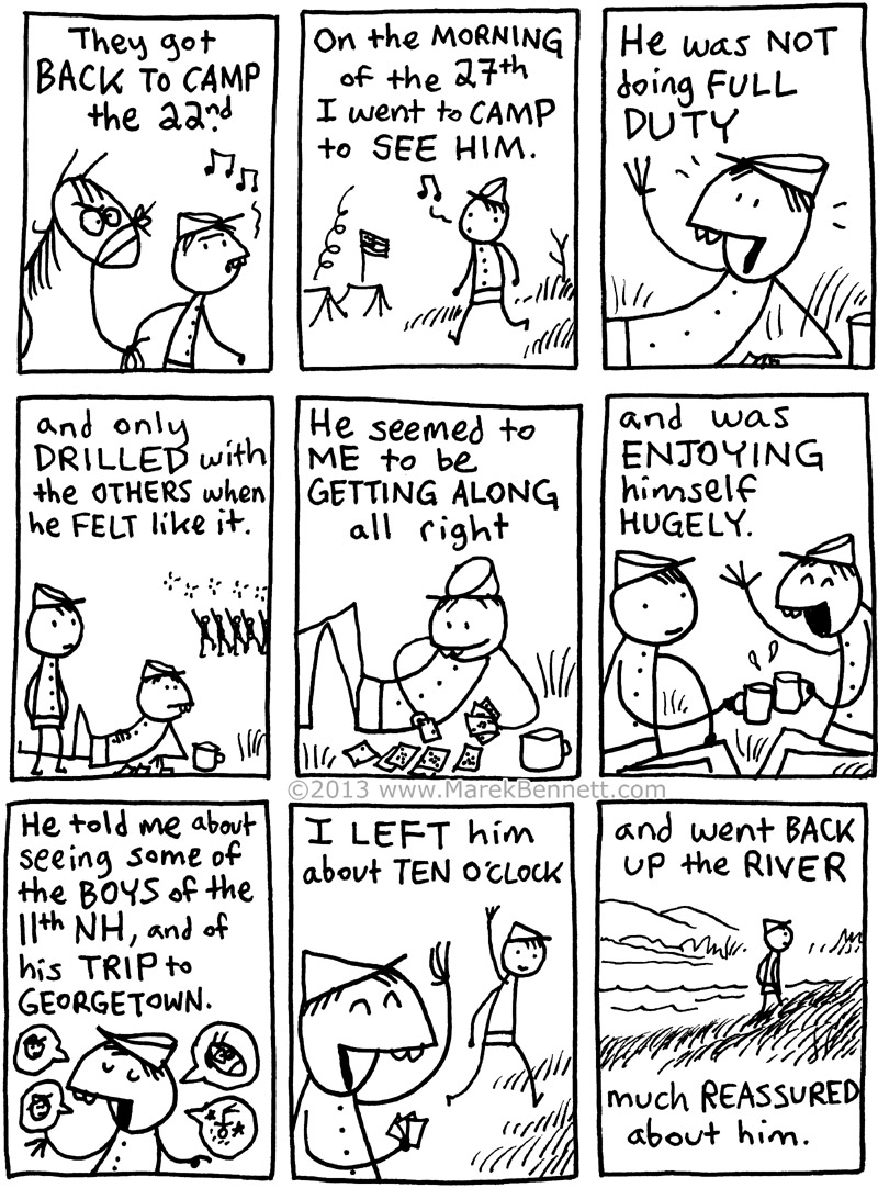 1862: Freeman checks up on his little brother … Civil War Diary of Freeman Colbyย (continued): << BEFORE: Newton takes chargeย … NEXT: Anniversary >> 39.045755 -76.641271 Share this: Click to share on Facebook (Opens in new window) Facebook Click to share on X (Opens in new window) X Click to share on Reddit (Opens in new window) Reddit Click to share on Pinterest (Opens in new window) Pinterest Click to email a link to a friend (Opens in new window) Email Click to print (Opens in new window) Print Like Loading... Related Published by Marek Cartoonist, musician, teacher. View all posts by Marek