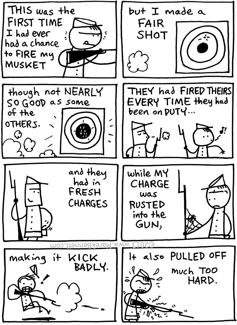 1862: Maybe this is why the picket guards were such poor shots? … Civil War Diary of Freeman Colbyย (continued): << BEFORE: Teamwork … NEXT: Rumors >> 39.280351 -77.527273 Share this: Click to share on Facebook (Opens in new window) Facebook Click to share on X (Opens in new window) X Click to share on Reddit (Opens in new window) Reddit Click to share on Pinterest (Opens in new window) Pinterest Click to email a link to a friend (Opens in new window) Email Click to print (Opens in new window) Print Like Loading... Related Published by Marek Cartoonist, musician, teacher. View all posts by Marek