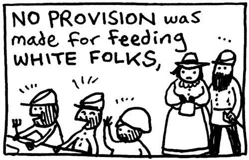 This remark stood out to me only as I drew the final panels of the account. There is at this feast clearly more than enough food for the freed slaves; Hawks even notes the women taking extra meat home in their aprons. However, the “white folks,” even committed abolitionists like Hawks & her husband, apparently need a special provision to eat. Is it even an option to sit at the feasting table with the the freed slaves? Or do the “white folks” (officers, teachers, superintendents, etc.) feel they require separate “provisions” before they can partake in the feast? Again, we are reminded of H. P. Moore’s haunting images : so close, yet so far away…