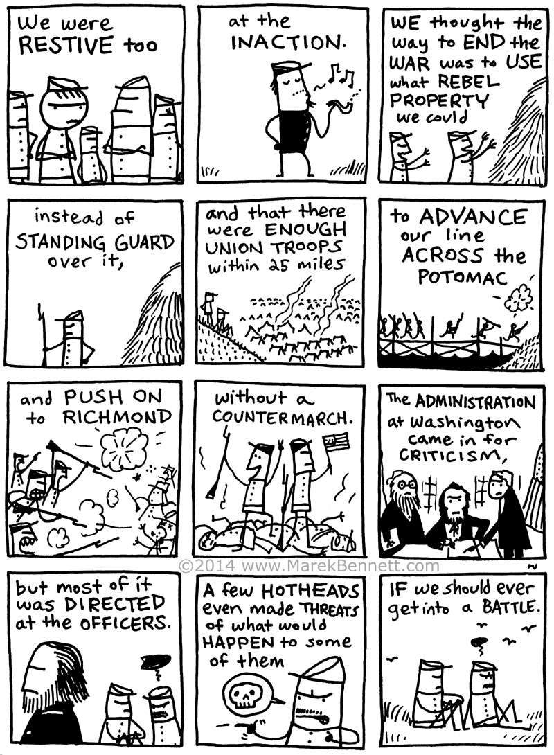1862: As an independent New Englander, Colby chafes at the army’s rigid protocols … Civil War Diary of Freeman Colbyย (continued): << BEFORE: “Even the negroes”ย … NEXT: Rain >> 39.128282 -77.192088 Share this: Share on Facebook (Opens in new window) Facebook Share on X (Opens in new window) X Share on Reddit (Opens in new window) Reddit Share on Pinterest (Opens in new window) Pinterest Email a link to a friend (Opens in new window) Email Print (Opens in new window) Print Like Loading... Related Published by Marek Cartoonist, musician, teacher. View all posts by Marek