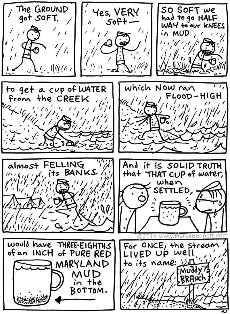 1862: The weather turns muddy … Civil War Diary of Freeman Colbyย (continued): << BEFORE: Officersย … NEXT: Wind>> ALSO: Colby at Muddy Branch (Poster) >> 39.128282 -77.192088 Share this: Click to share on Facebook (Opens in new window) Facebook Click to share on X (Opens in new window) X Click to share on Reddit (Opens in new window) Reddit Click to share on Pinterest (Opens in new window) Pinterest Click to email a link to a friend (Opens in new window) Email Click to print (Opens in new window) Print Like Loading... Related Published by Marek Cartoonist, musician, teacher. View all posts by Marek
