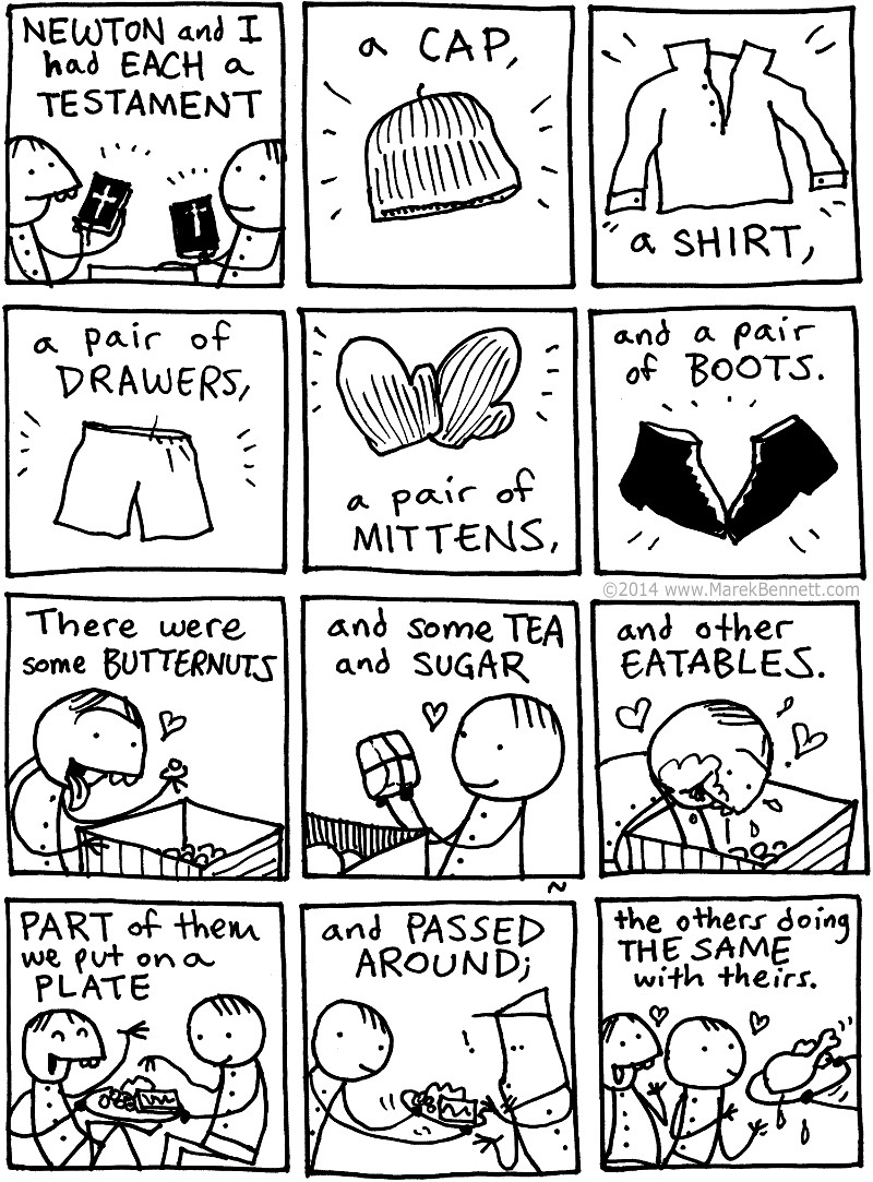 1862: Now that the holiday boxes have finally arrived, the boys choose to look on the bright side …