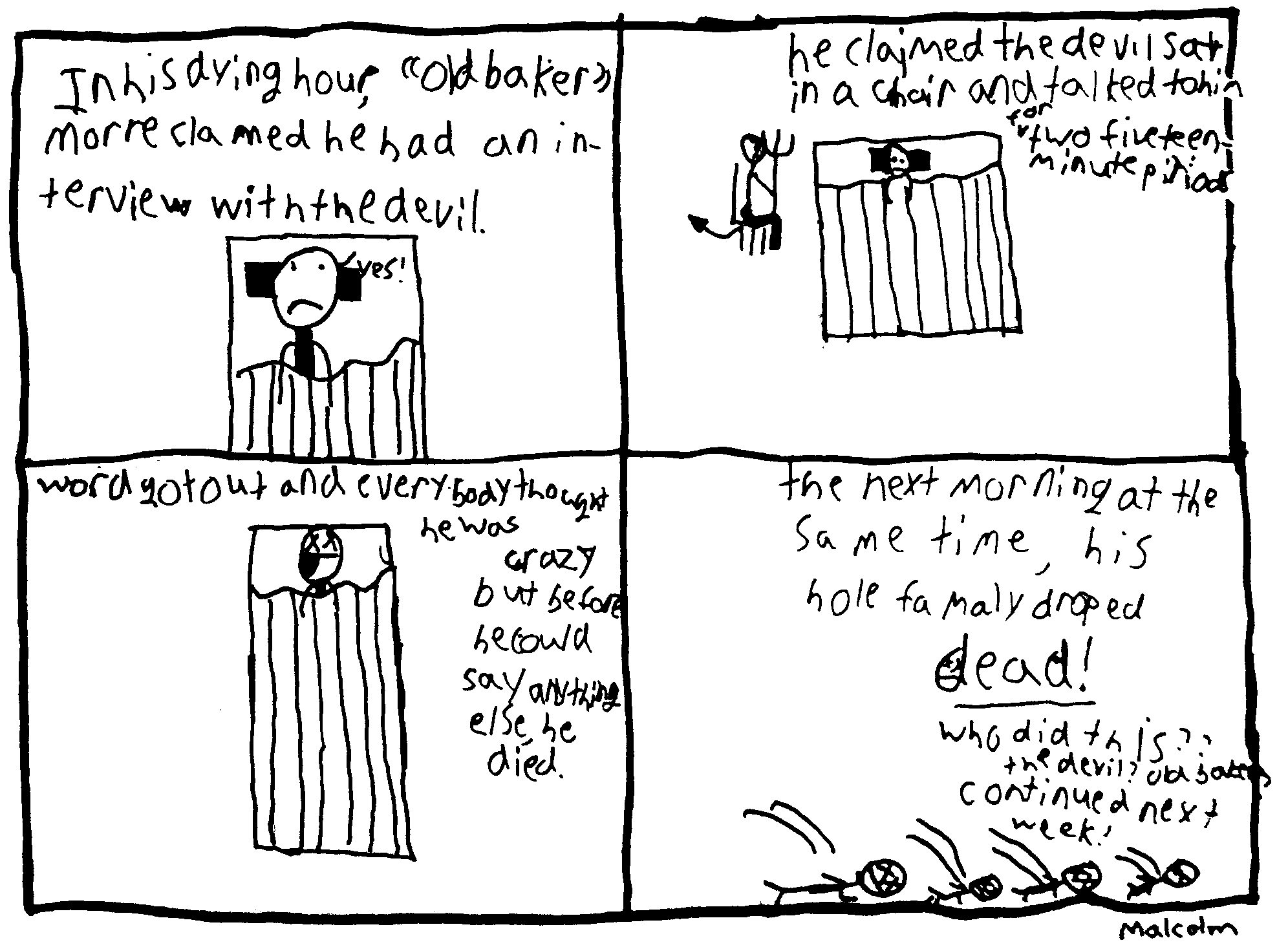 Guest artist Malcolm (of Dublin, NH) dramatizes of an old supernatural Peterborough fiddler legend from Kinscella’s Chronicles of Peterborough: