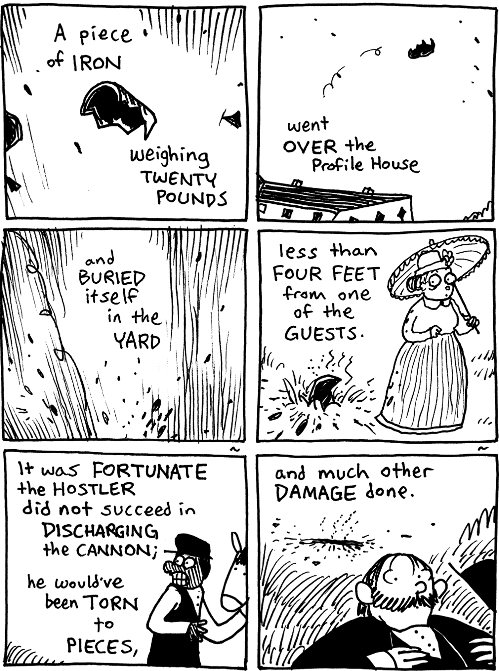 1865: ย Unsafe cannonades to celebrate the Fourth of July at the end of the Civil War almost end in tragedy for guests at the Profile House!