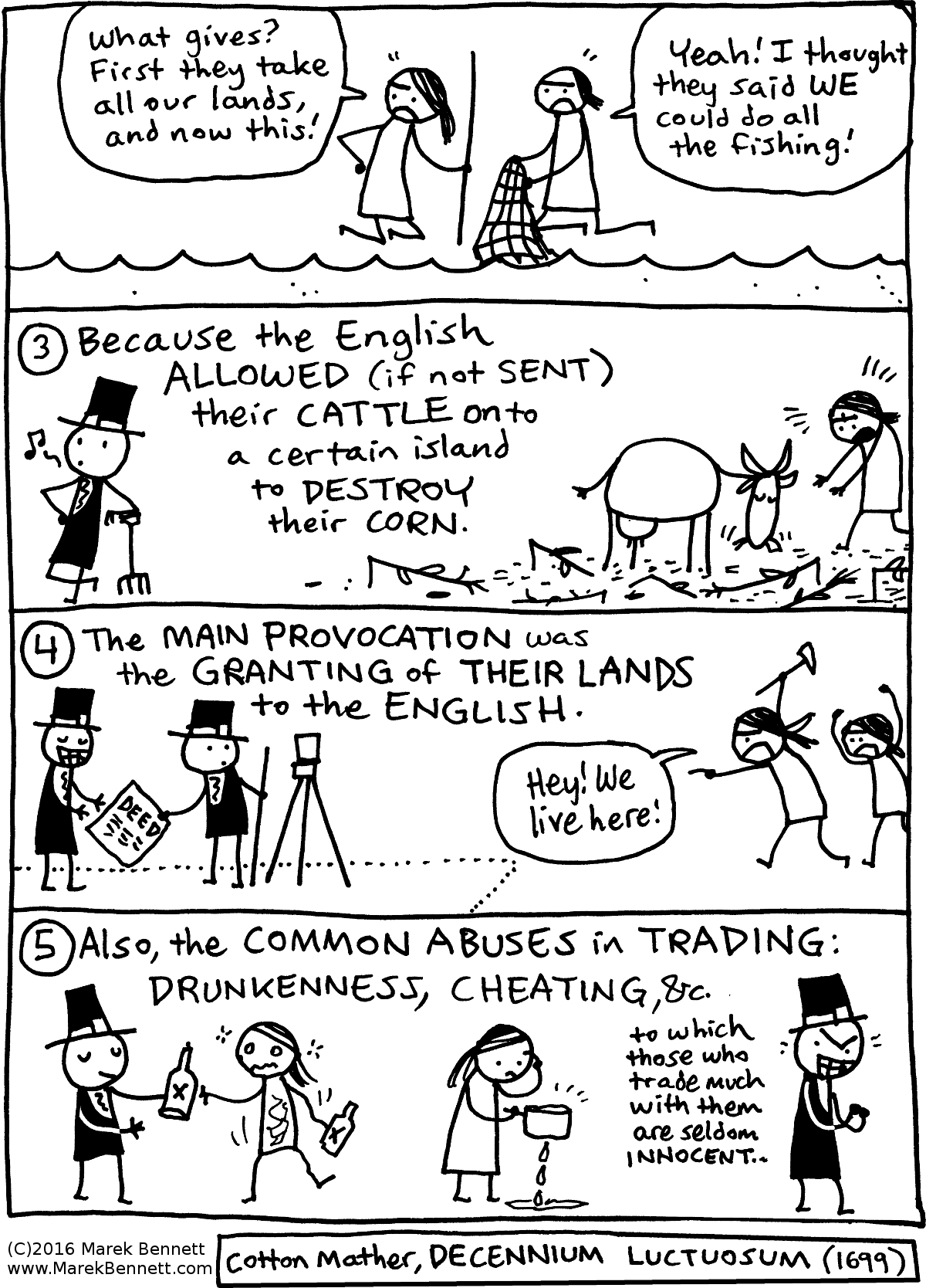 Mather was something of an Indian hater, so this is an amazing list to discover in his writings. ย It gives us a hint of some of the disputes between native peoples and the Massachusetts Bay colonists in the years preceding the 1697 raid at Haverhill.