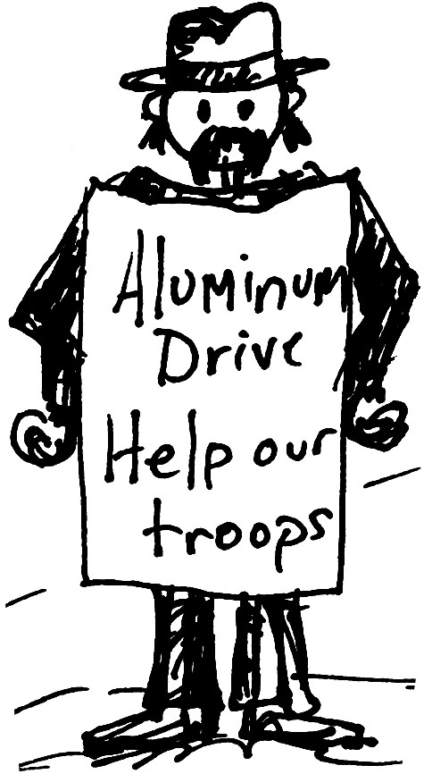 Henniker sends metal to Berlin as part of the war effort... (Drawn by guest artist / art teacher Todd Storro)